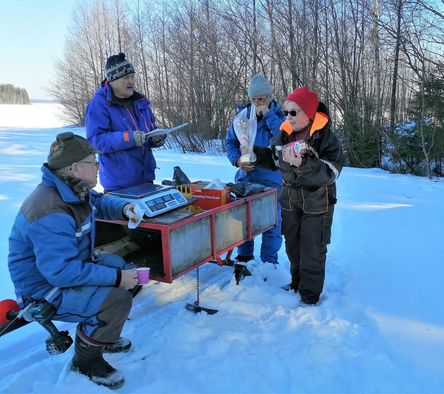 Eipä olisi ilma voinut olla parempi kuin oli meidän pilkkikisoissa. Aurinko paistoi pilvettömältä taivaalta ja hanki kantoi jäällä pakkasyön jäjiltä. Paikalla oli kolmisenkymmentä pilkkijää ja muuten ulkoilusta nauttivaa jäsentä.