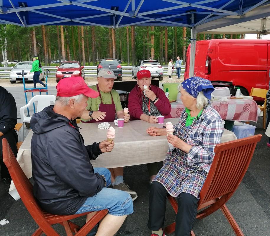 Välillä ehtivät talkoolaiset syömään jäätelöä.
