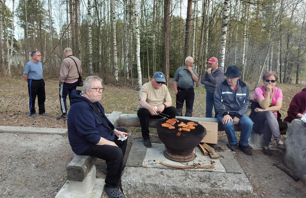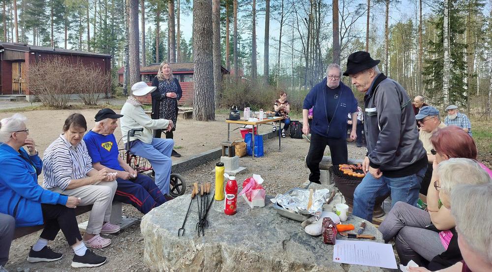 Kevään viimeinen kerho vietettiin kirkon pihassa makkaraa ja munkkeja syöden.