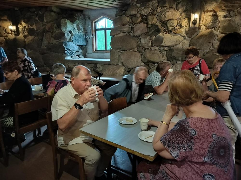 Näiden jälkeen maistuikin lounas, jonka söimme Veturitalleilla sijaitsevassa Ukko Bistrossa. Lounaan jälkeen kuulimme Veturitallien historiaa ja lähdimme linja-autolla kiertoajelulle oppaan avulla tutustumaan laajemmin Pieksämäkeen.