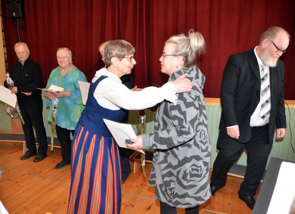 Puheen jälkeen Timo Kokko jakoi kultaiset ja hopeiset ansiomerkit henkilöille, jotka ovat tehneet ahkerasti töitä yhdistyksen eteen. Kultaisia jaettiin kuusi ja hopeisia seitsemän kappaletta.