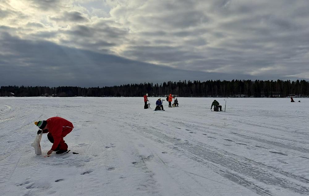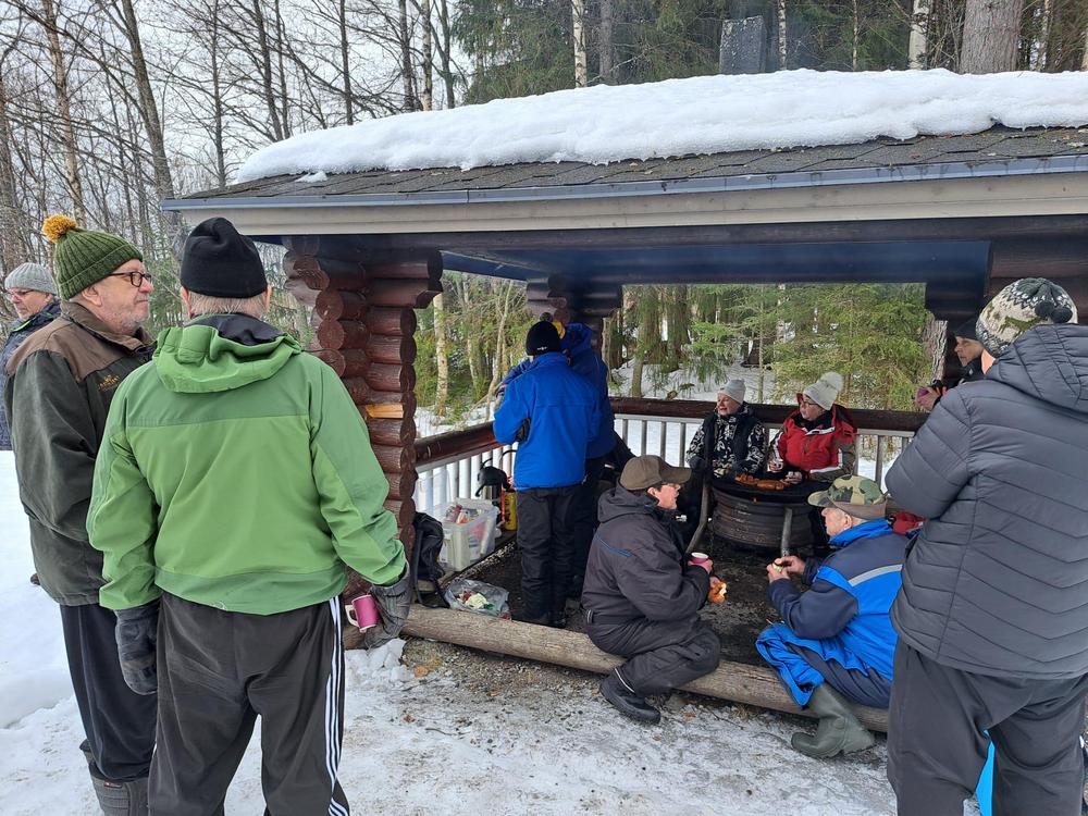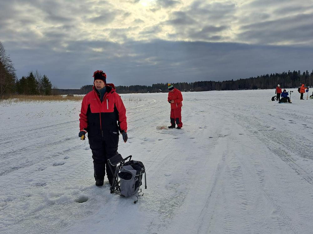 Perinteinen pilkkikisa Varikon rannassa ja Kirvessaaressa makkaraa syöden ja jälkiruuaksi tietenkin munkkikahvit.