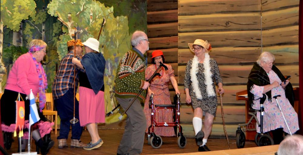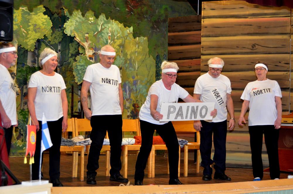 Ohjelmaosuuden aluksi kuulimme kuorolaulua JTY:n sekakuoron Aallon laulajien esittämänä. Tämän jälkeen yhdistyksen oma väki esitti muutaman ohjelmanumeron. Nörteillä oli uusi kuntosaliohjelma, Mauri esitti Severi Suhosta ja viimeisenä nähtiin vanhainkodin vauhdikasta elämää rollaattoritanssin merkeissä. Kuvat kertovat lisää.