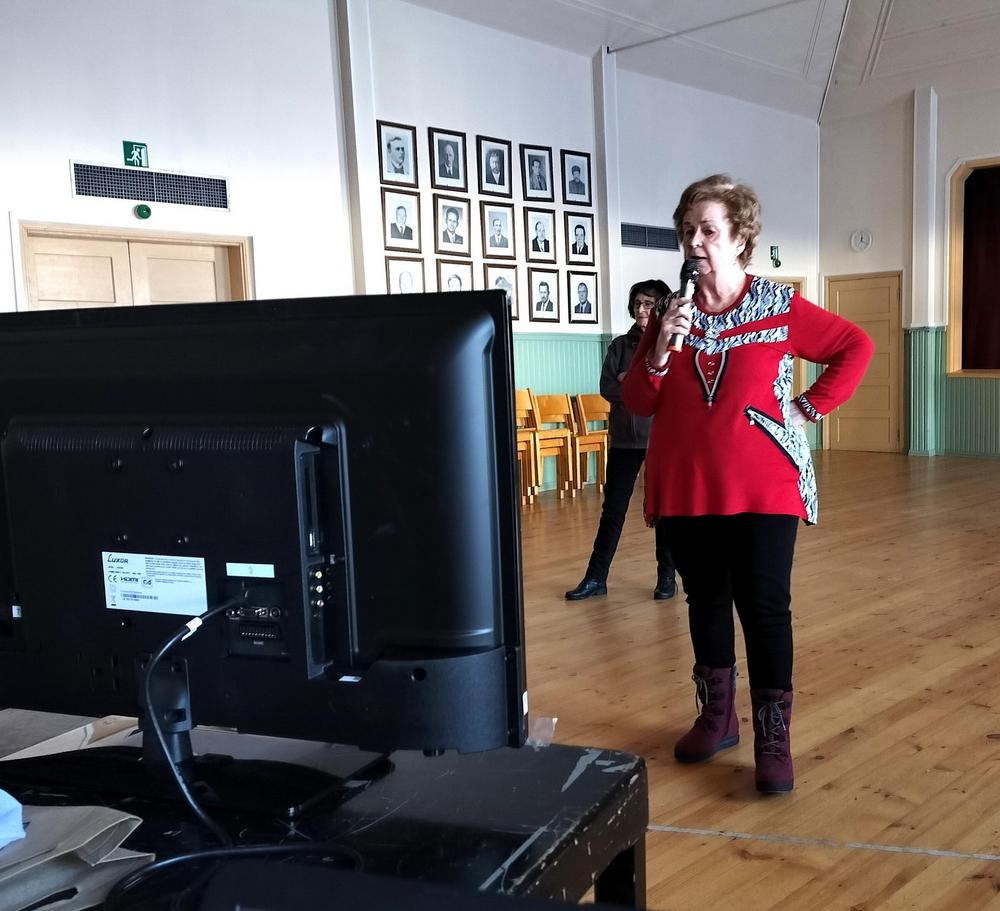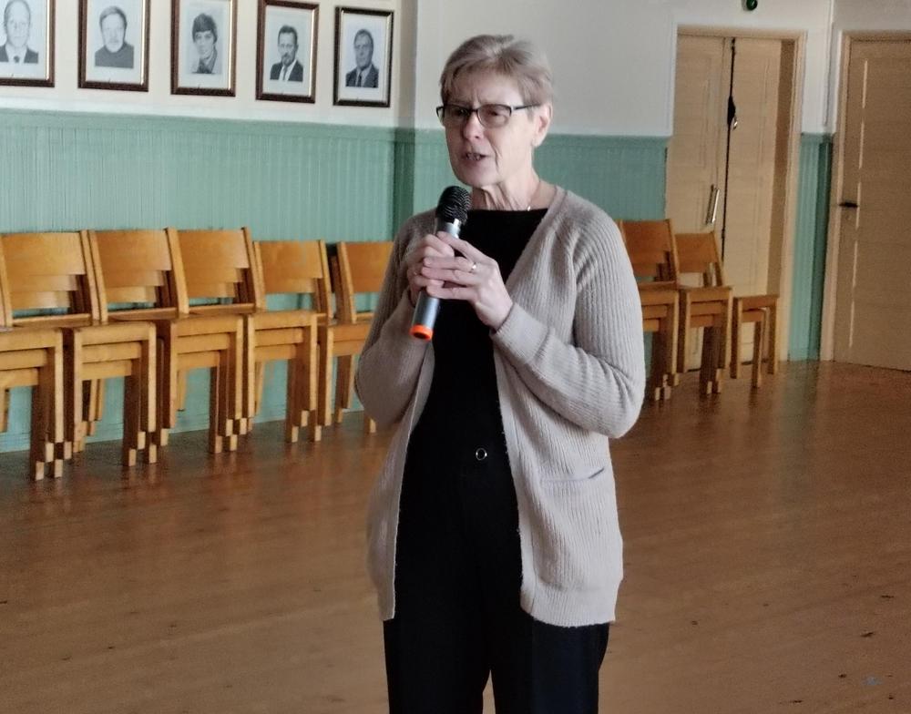 Puheenjohtajamme Raija Pölkki esitti tervehdyssanat, jonka jälkeen lauloimme yhdessä Keski-Suomen kotiseutulaulun.