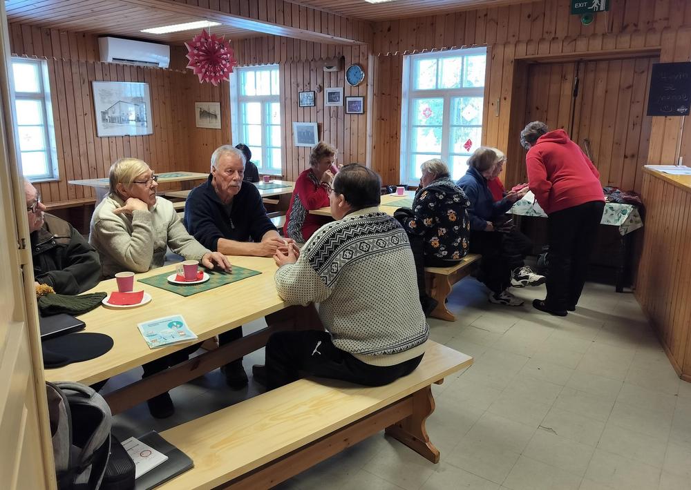 Palan painikkeeksi oli oikeaa nokipannukahvia. Leena Kautto-Koukka kävi kertomassa hyvinvointialueen kuulumisia.