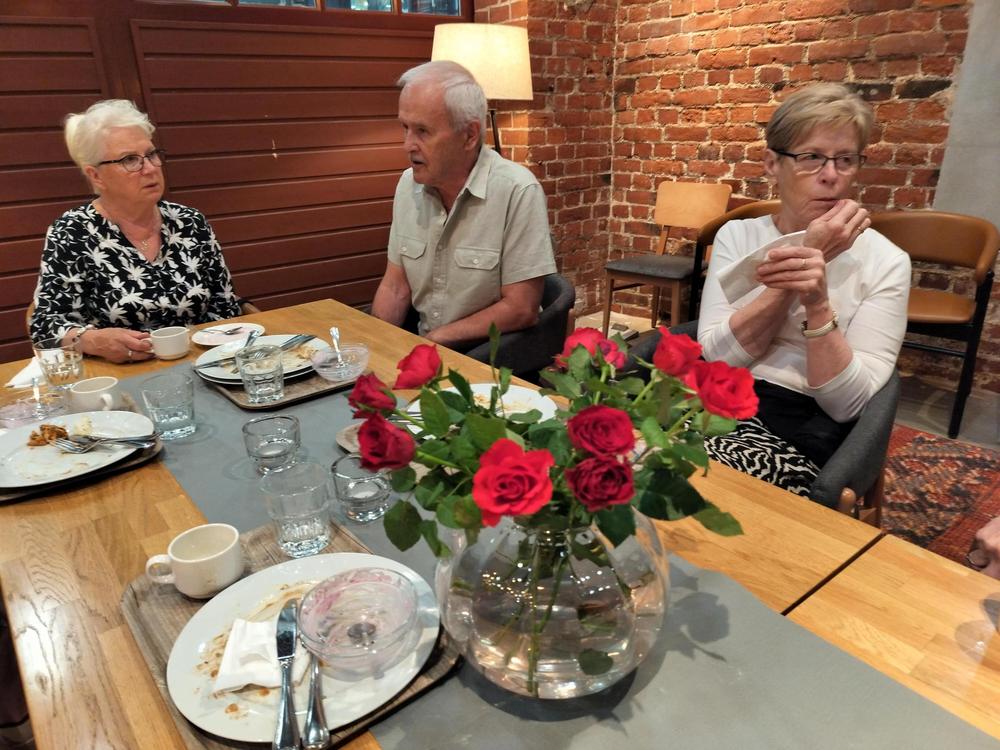 Juhla aloitettiin LempiLievoksen Sirpan tekemällä maittavalla lohikeitolla ja jälkiruuaksi tietenkin täytekakkua ja kahvia.